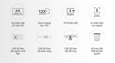 Camera PTZ theo dõi tự động AI PTC310H cung cấp khả năng Pro AV mạnh mẽ và đáng tin cậy cho mọi người. Lấy cảm hứng từ gia đình Máy ảnh PTZ chuyên nghiệp AVer, PTC310H có các chức năng AI trong nhà như Chế độ theo dõi tự động và Chế độ khu vực, nhờ xử lý Phát hiện con người. Kết hợp ống kính Zoom quang học 12X và độ phân giải 4K với chức năng theo dõi tự động lai và các chức năng PTZ mượt mà để phát, truyền phát hoặc ghi âm. Hành trình thú vị của bạn về thu âm và video bắt đầu từ đây!