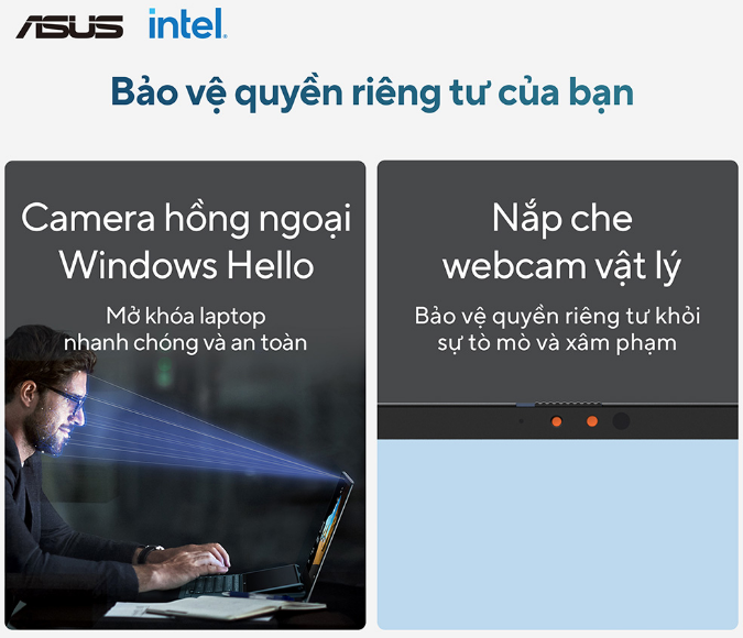 FHD camera with IR function to support Windows Hello ; With privacy shutter