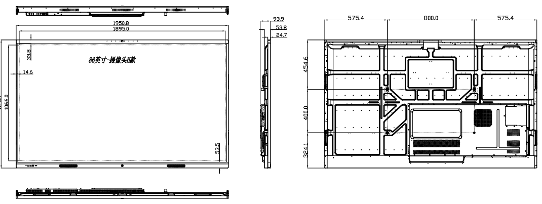 -Phía sau: HDMI in*2; USB-A2.0*1; USB (touch)*1; Line out*1; RJ45*1; Mic in*1; Optical out*1; RS232*1, VGA *1