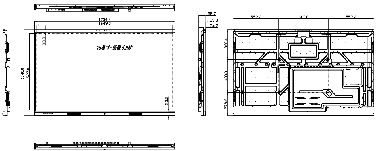 -Phía sau: HDMI in*2; USB3.0*1; USB2.0*1; USB (touch)*1; RJ45 in*1; Optical out*1; Mic in*1; Line out*1;RS232*1; OPS Slots*1