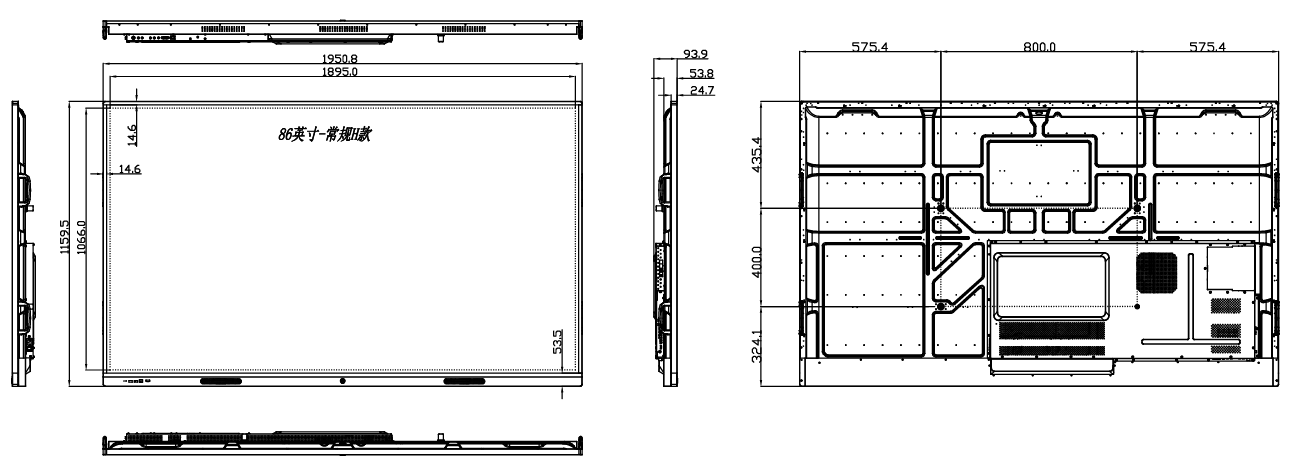 -Phía sau: HDMI in*2; USB3.0*1; USB2.0*1; USB (touch)*1; RJ45 in*1; Optical out*1; Mic in*1; Line out*1;RS232*1; OPS Slots*1
