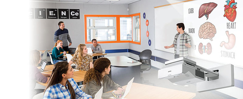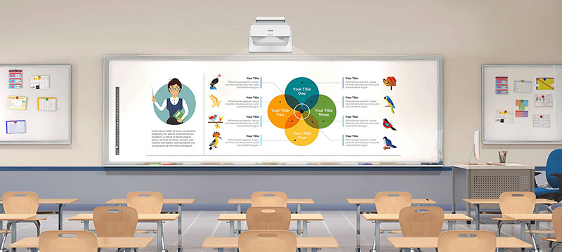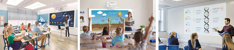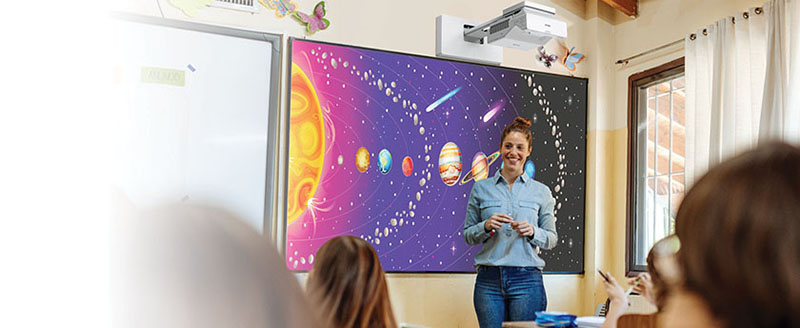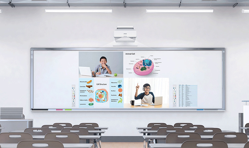 Khả năng hiển thị đồng thời và màn hình tương tác số lớn là điều rất hữu ích trong việc giảng dạy. Màn hình tương tác 100 inch của máy chiếu Epson 770Fi tạo ra không gian tương tác rộng hơn đến 75% so với các bảng tương tác cùng loại.