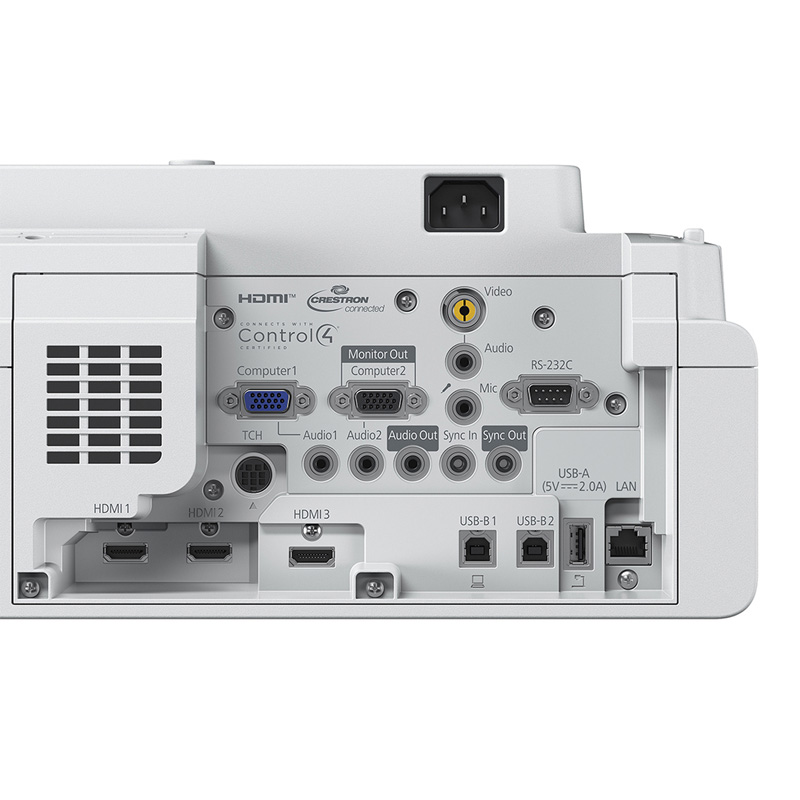 "* Công nghệ: 3LCD * Cường độ sáng trắng: 4.100 ISO lm * Cường độ sáng màu: 4.100 ISO lm * Độ phân giải thực: Full HD (1920 x 1080)* Độ tương phản: 5.000.000:1 * Kích thước chiếu: 60"" - 100""* Khoảng cách chiếu: 348 - 600 mm* Nguồn đèn: Laser Diode* Tuổi thọ nguồn đèn: 20.000 giờ * Loa tích hợp: 16W * Chỉnh lệch hình: ±3° (dọc, ngang) * Kết nối: HDMI x 3, Wireless (tuỳ chọn), LAN RJ45, Composite x1(RCA), Stereo mini jack in x 3, Stereo mini jack out, Microphone, VGA in x 2, VGA out, RS232C, USB-A x2, USB-B x2.* Kết nối tương tác: Mini Din 8pin x 1, Stereo Mini x1* Hỗ trợ tương tác bằng tay* Tự động chỉnh vuông hình ảnh * Multi-PC trình chiếu 4 thiết bị cùng lúc* Trình chiếu hình ảnh từ USB * Trình chiếu và quản lý máy chiếu thông qua mạng LAN * Cổng USB-B (3 trong 1) trình chiếu hình ảnh, âm thanh và sao chép cài đặt, cập nhật firmware * Chức năng tạm dừng trình chiếu, tiết kiệm điện năng * Xuất xứ: Philippines"
