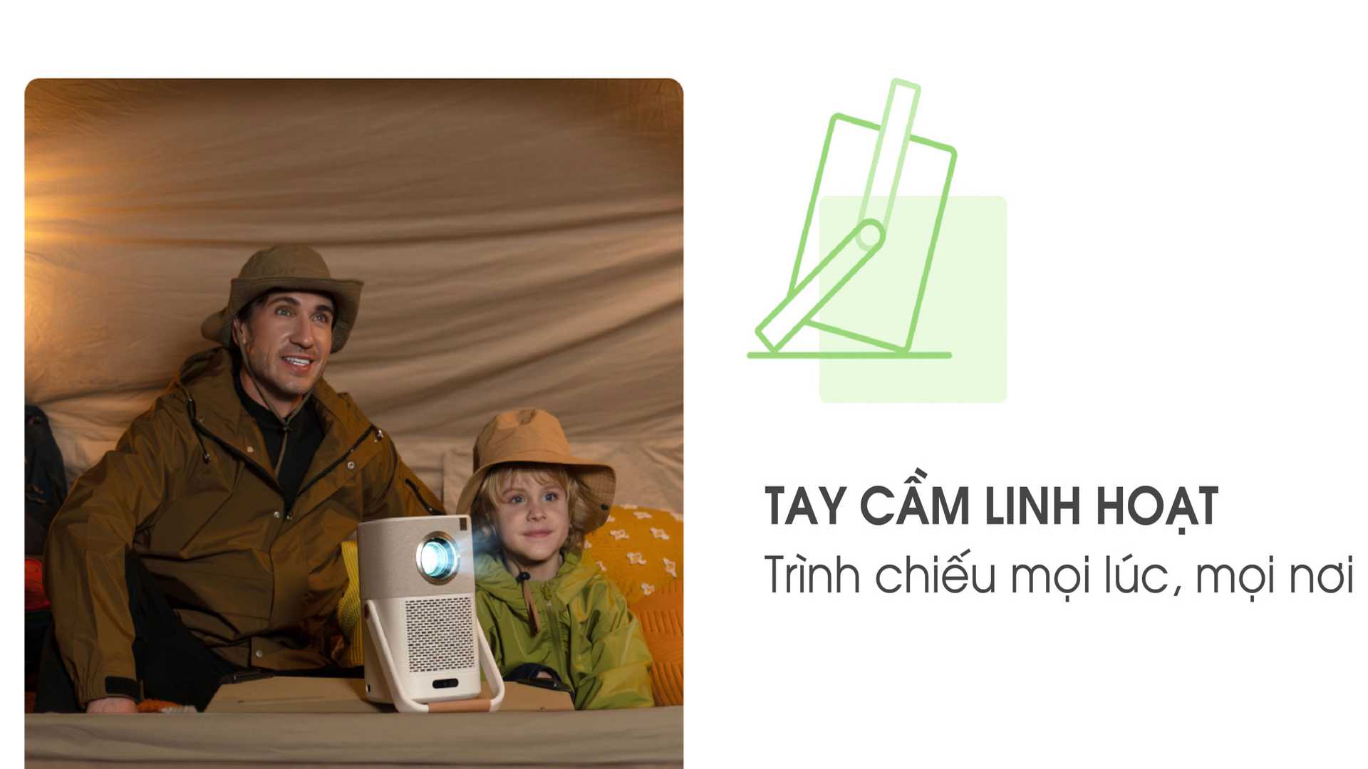 - Tích hợp 2 trong 1: Máy chiếu Full-HD và loa Bluetooth.