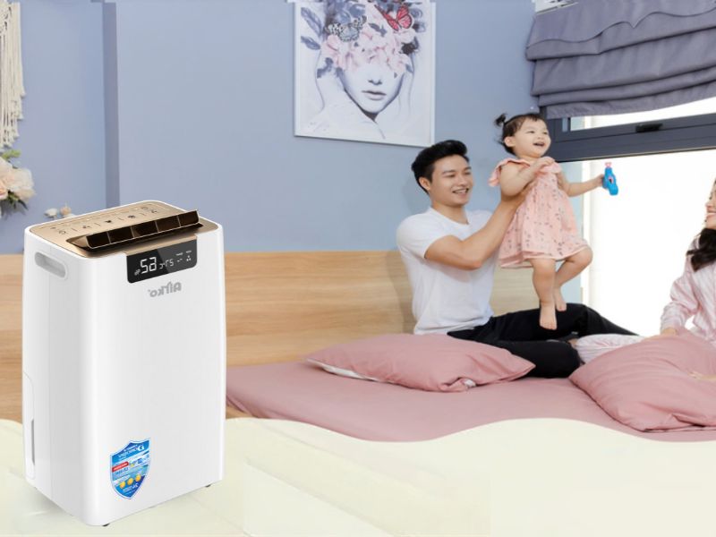 Duy trì độ ẩm lý tưởng 40–60%, bảo vệ sức khỏe và hạn chế sự phát triển của nấm mốc, vi khuẩn.