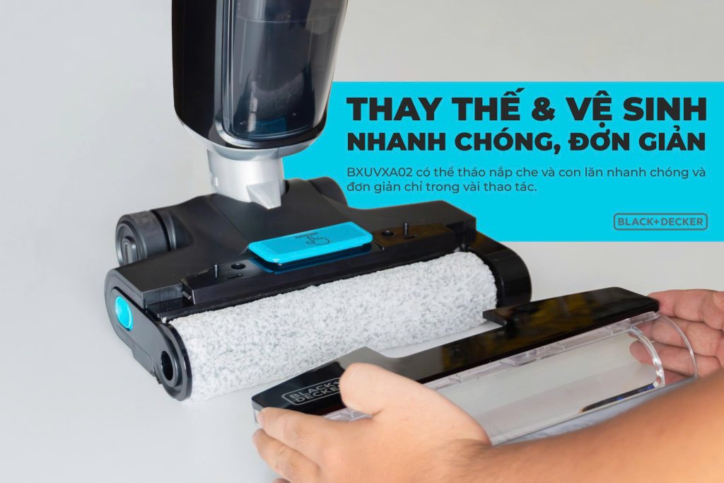 Máy hút bụi lau sàn thông minh không dây 5 chức năng Black+Decker BXUVXA02 có thiết kế kết hợp hai công việc hút bụi và lau sàn trong một bước vô cùng tiện lợi. Máy sẽ hút và lau mọi vết bẩn trên sàn nhà, từ bụi bẩn, lông thú cưng, tóc rụng đến sữa, trứng gà rơi, các loại tương, dầu ăn…. đều sẽ được máy hút sạch, mang đến không gian sống sạch sẽ, an toàn cho sức khỏe người dùng.