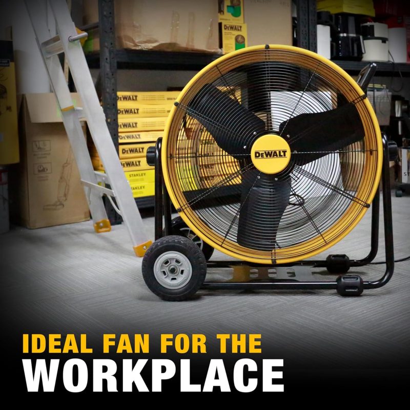 Quạt sàn công nghiệp Dewalt 24″ DXF2410 còn có tính năng làm thông gió và có tính cơ động cao nhờ hệ thống bánh xe giúp di chuyển dễ dàng từ chỗ này sang chỗ khác, không giống như các quạt thông gió thông thường gắn cố định trên tường.