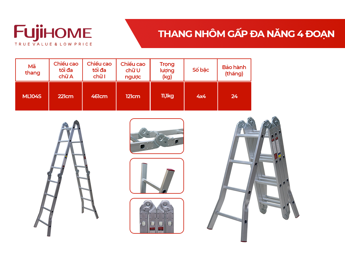 Thang nhôm gấp đa năng 4 đoạn FUJIHOME ML104S