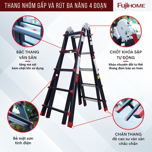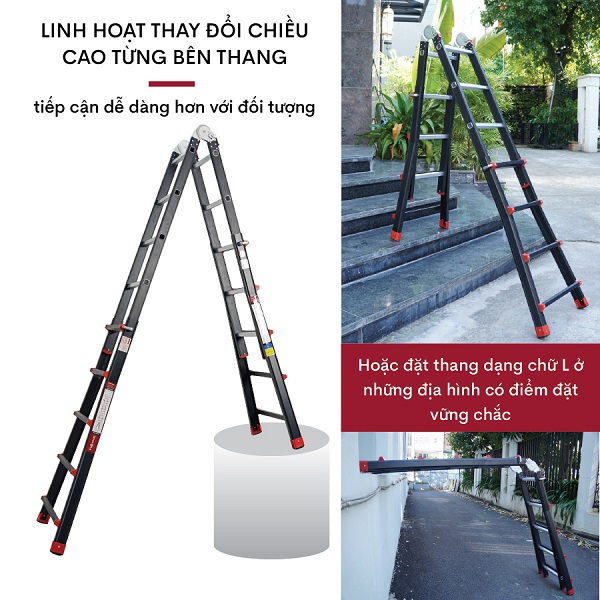 Thang gấp và rút có khả năng biến hình thành nhiều thế thang, được sử dụng trong nhiều công việc từ cho gia đình, kho hàng đến các công trình kỹ thuật, dễ dàng chinh phục mọi địa hình độ các độ cao khác nhau . Một chiếc thang có thiết kế thông mình và khác biệt hoàn toàn các dòng thang hiện có trên thị trường chắc chắn bạn sẽ có những trải nghiệm tuyệt vời khi sử dụng chúng
