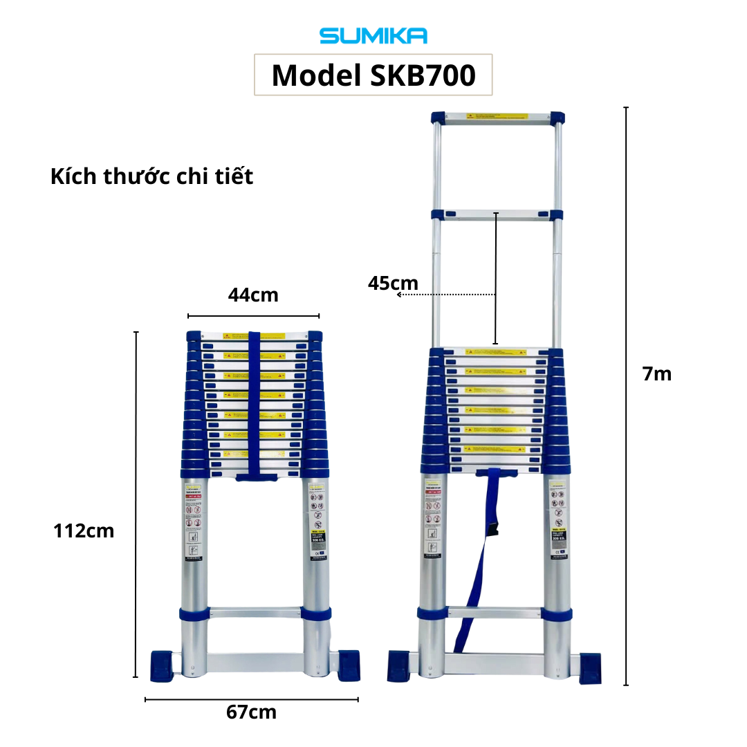 • Có thanh cân bằng phía dưới chân thang: 68cm.