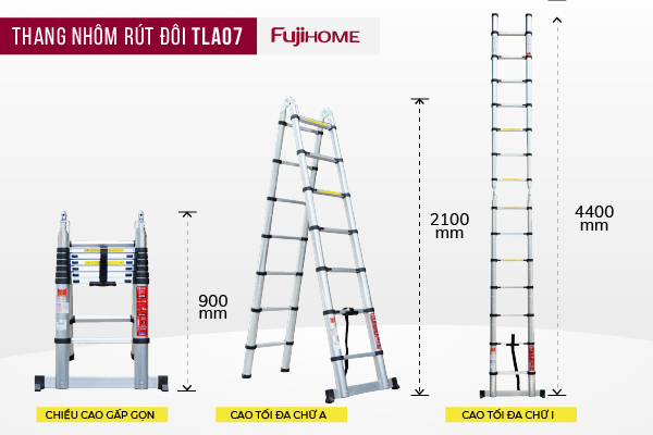 Ưu điểm của dòng thang này dễ sử dụng, việc kéo ra và gấp lại thang rất dễ thao tác. Thang nhôm rút gọn (chữ A) FUJIHOME TLA07 rút ngắn gọn nên dễ dàng mang vác từ nơi này đi nơi khác, tiết kiệm được rất nhiều không gian cất thang.