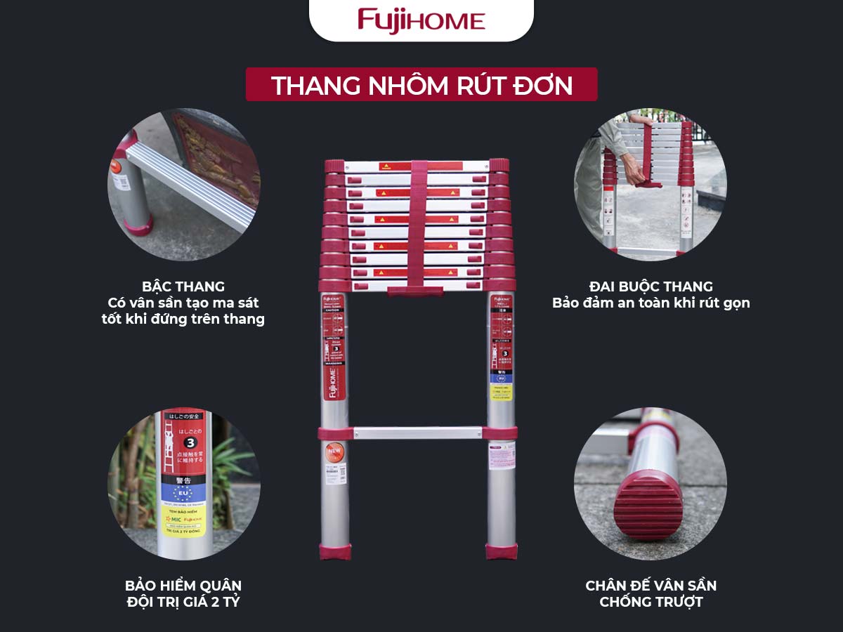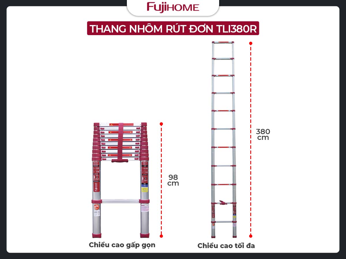 Thang nhôm rút gọn đơn FUJIHOME TLI380R